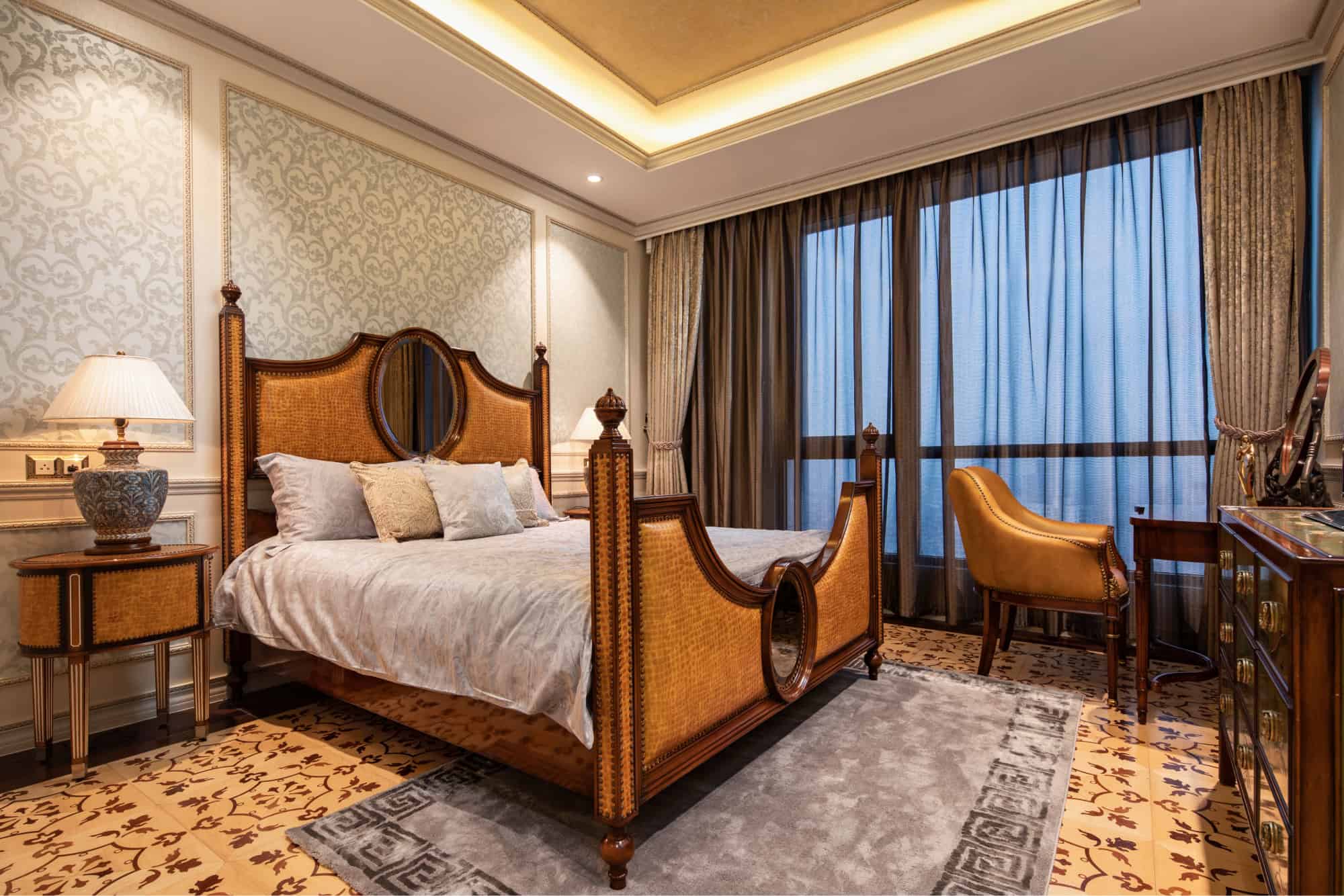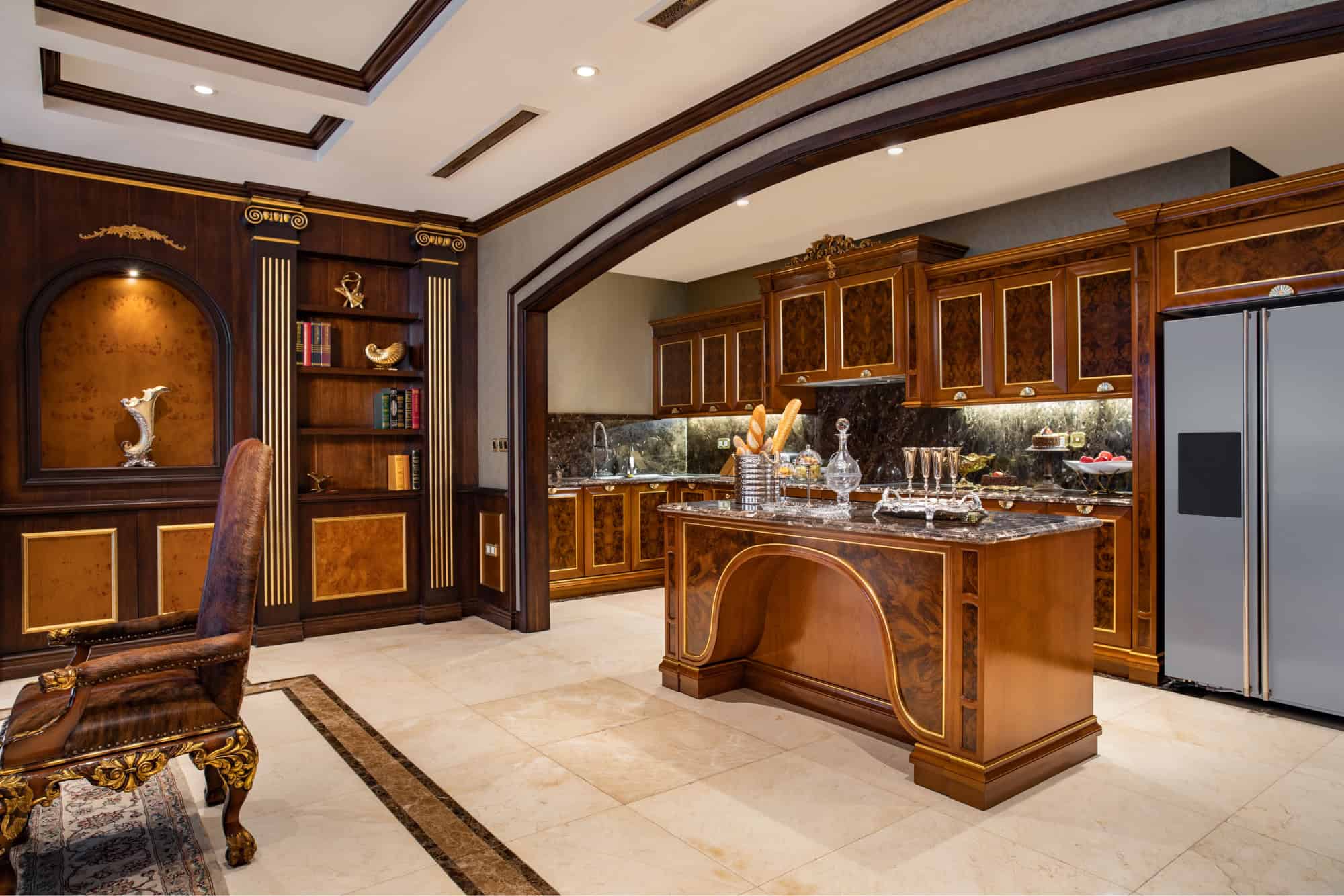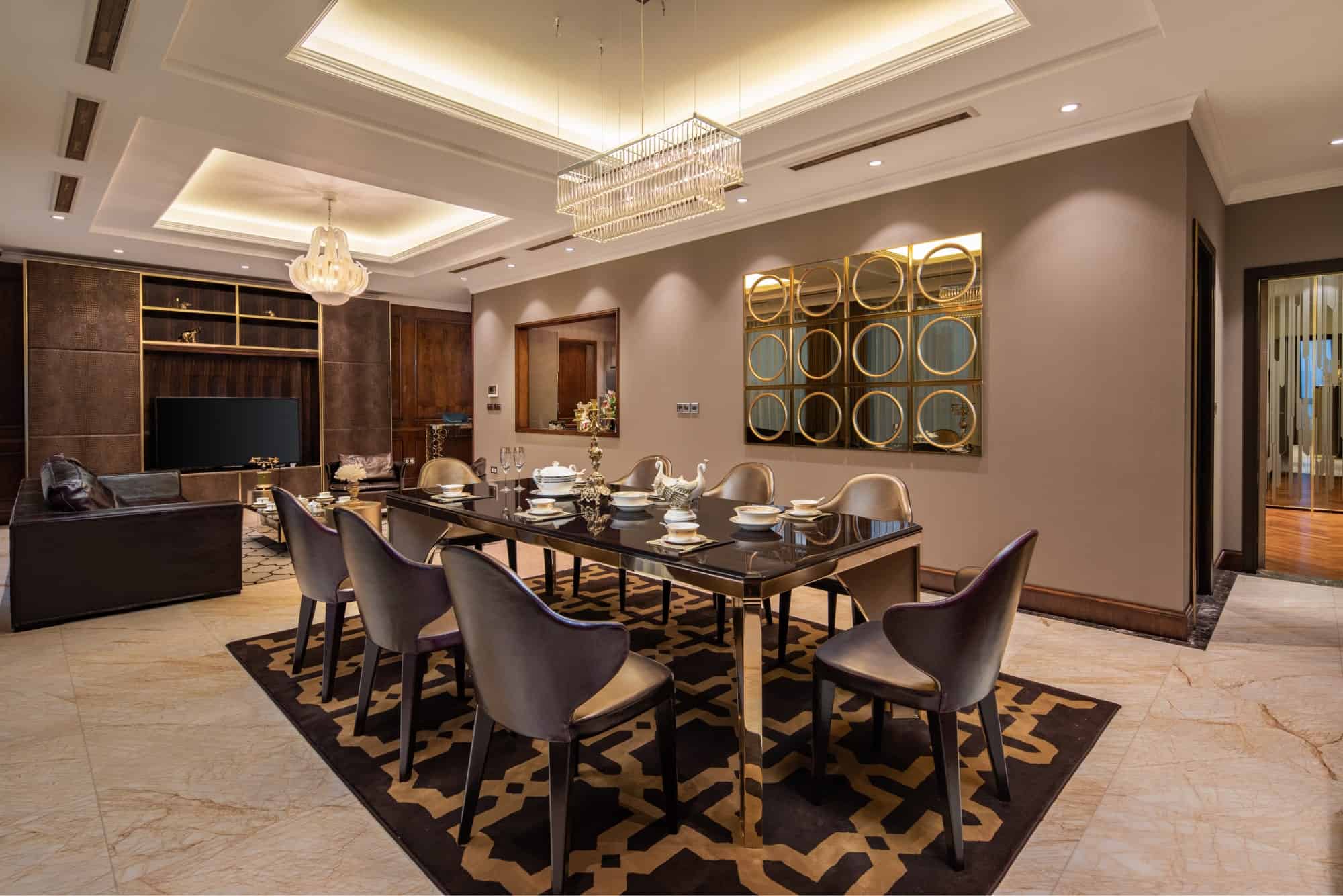Được thiết kế với các hoạ tiết tân cổ điển theo phong cách hoàng gia, cách xử lý nội thất thể hiện dấu ấn thời gian có chủ ý, dinh thự hiện lên với dáng vẻ quá khứ đầy quyền lực với thiết bị đến từ thương hiệu nội thất nổi tiếng Dragan, Ý.