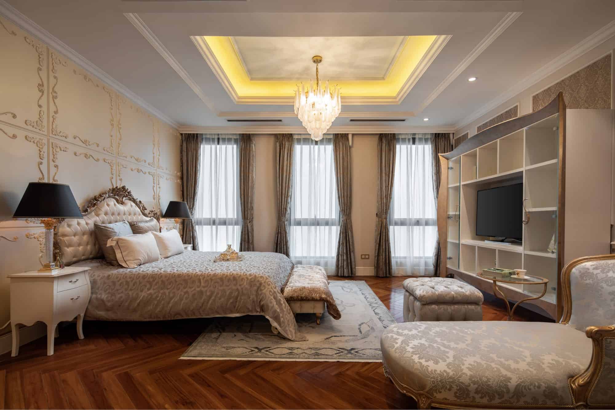Mọi nội thất hiện đại trong dinh thự đều được nhập khẩu từ thương hiệu nổi tiếng, Portos của Ý. Với thiết kế đậm chất tân cổ điển, dinh thự đem nét lãng mạn của những câu chuyện kể xưa thành hiện thực: mạnh mẽ, quyền lực và ấn tượng.